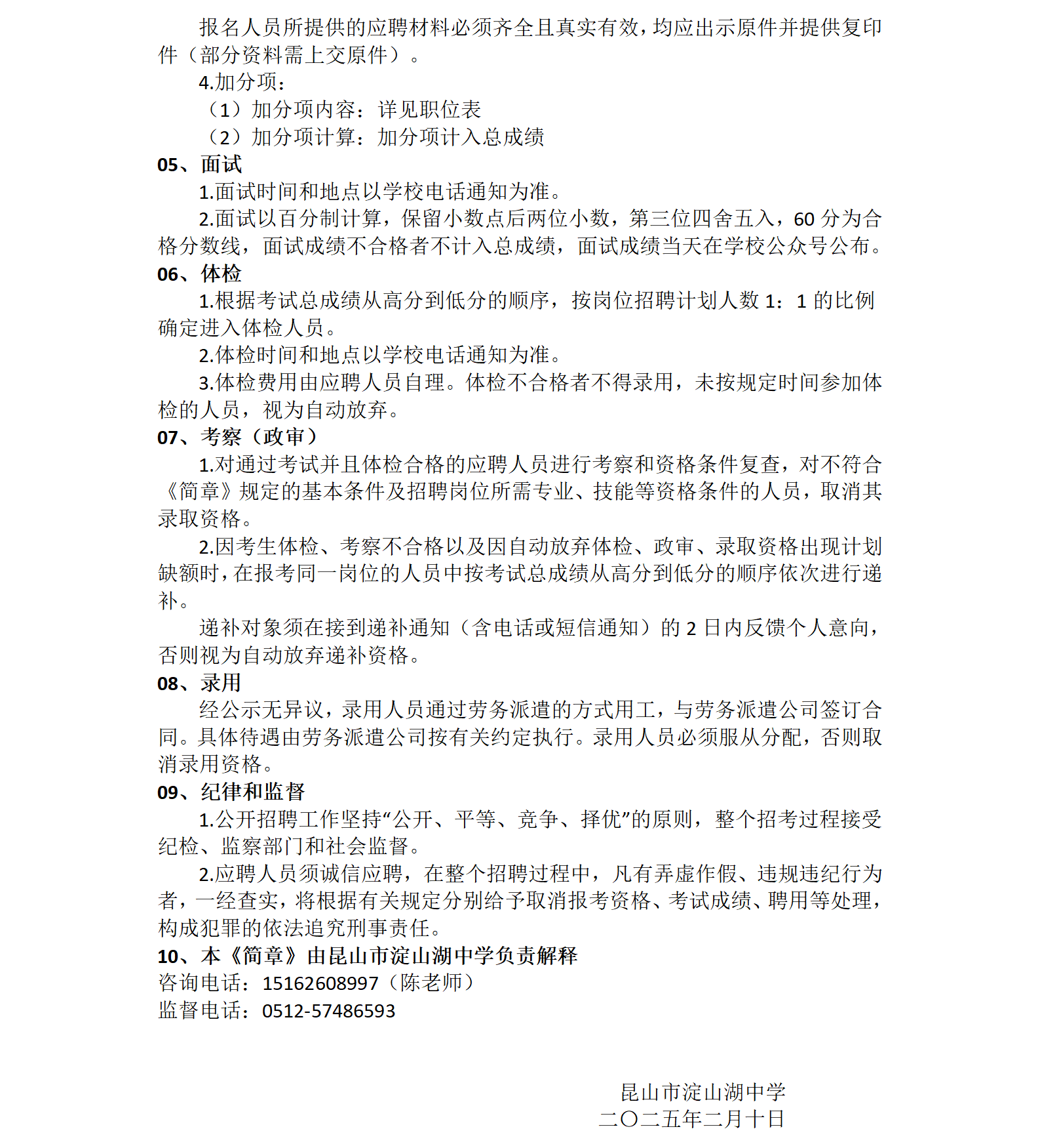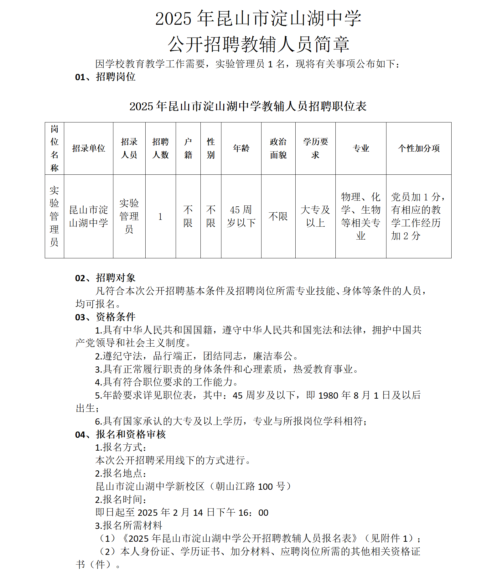 2025年昆山市淀山湖中学公开招聘教辅人员
